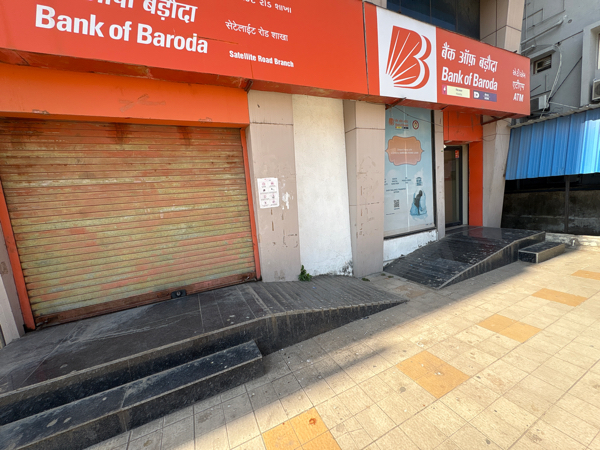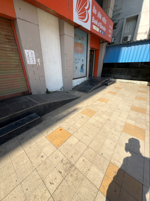 Only steps provided to reach at the entrance and slope and steps are provided without hadrail at Bank and ATM entrance.
