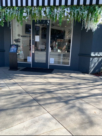 Entrance is leveled to the ground and the surface is flat there, it has an open space available by the door.