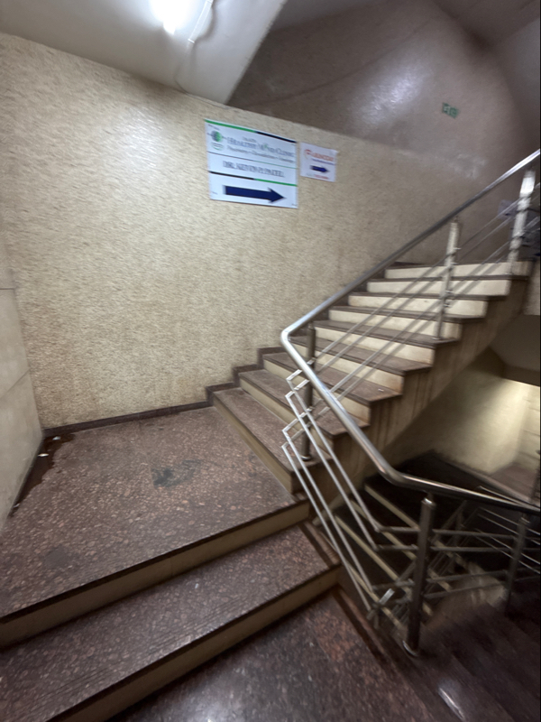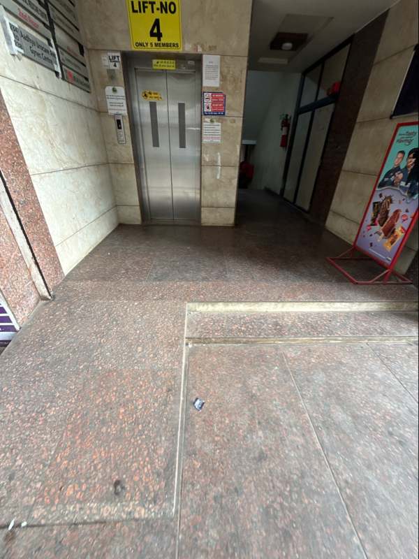 There is a ramp without a handrail, and there is an elevator to access the above floors. Accessible place for SAP