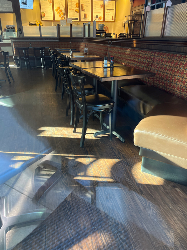 The store is accessible, but there is not a lot of space with the tables and chairs.