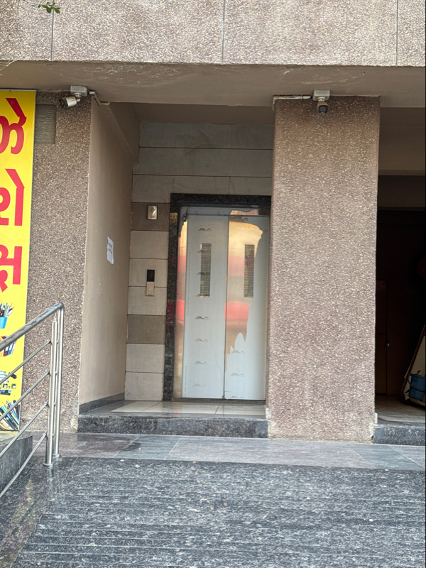 Propoer slopr of ramp and stair with handrail are provided but at shops and elevator pathway one step is provided. Not accessible.