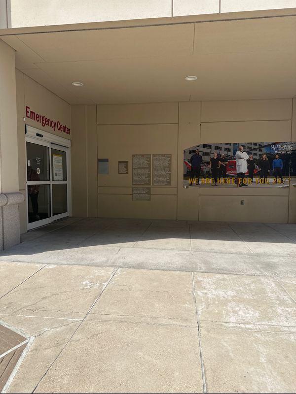 Emergency room with a drive up ramp, automatic doors, and convenient parking for specially abled people.