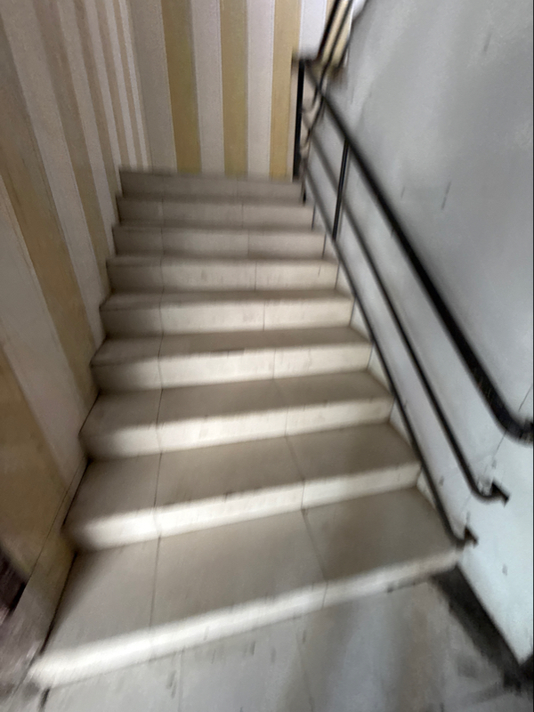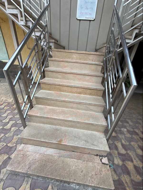Ramp and stair are available without handrail. ramp surface is ueven. Not accessible.