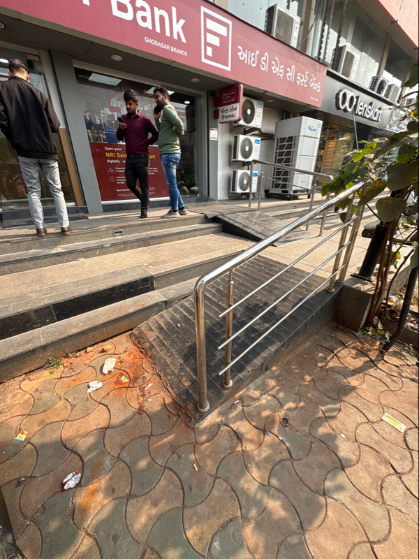 Proper slope of ramp with handrail and stair without handrail are provided. Accessible for all.
