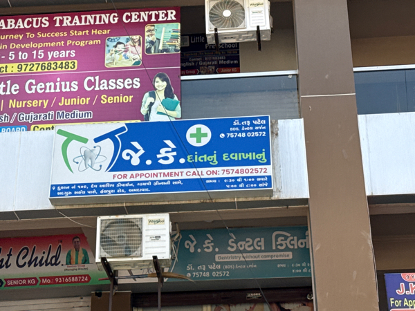 JK Dental Clinic 3MCJ+63C, Haridarshan Cross Rd, Vasant Vihar 2, Nava Naroda, Ahmedabad, Gujarat 382330, India (Required) (Required) --Select Country-- India United States United Kingtom (Required) --Select State-- Gujarat Rajasthan Maharashtra (Required) --Select City-- Ahmedabad Udaipur Pune (Required) (Required) Only stairs are available at the entrance. Not an accessible place for SAP