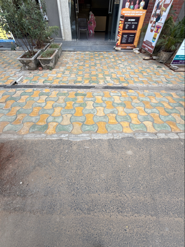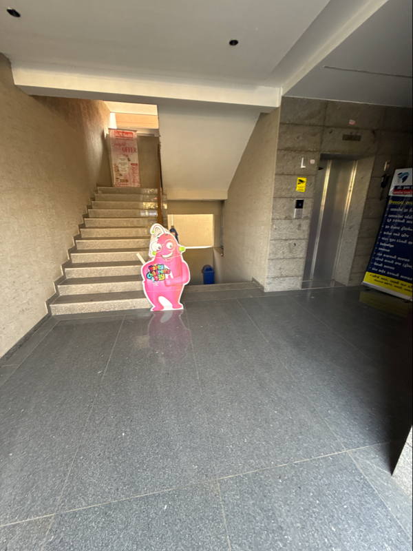 Slope is proper but there is a step is available at the entrance, staircase with handrail and elevator are provided to access the above floors. Not accessible.