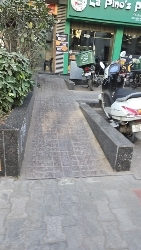 Proper slope of ramp and stair are provided without handrail. Less accessible.