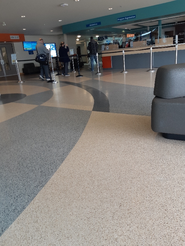 The lobby itself is wide and inviting. There are no obstacles and the floor is clean. Additionally, doors open automatically which assist those coming in. Very accessible!