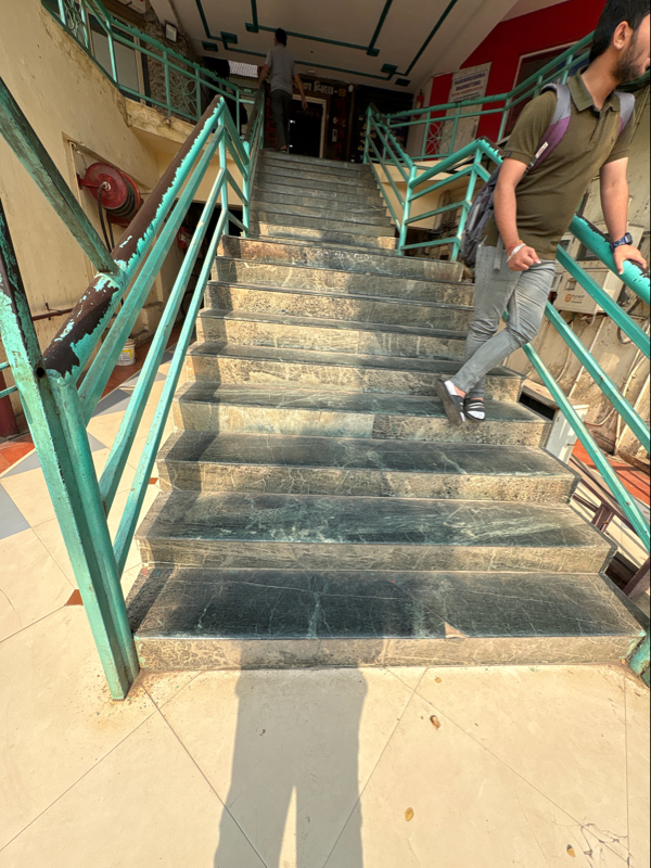 There are stairs at the entrance of the building, and there is an elevator, but to reach it, there are stairs. Not an accessible place for SAP