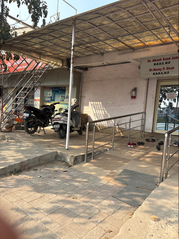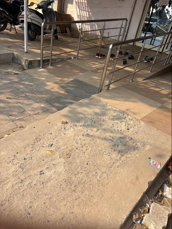 There is a ramp with a railing at the entrance of the building. Accessible place for SAP