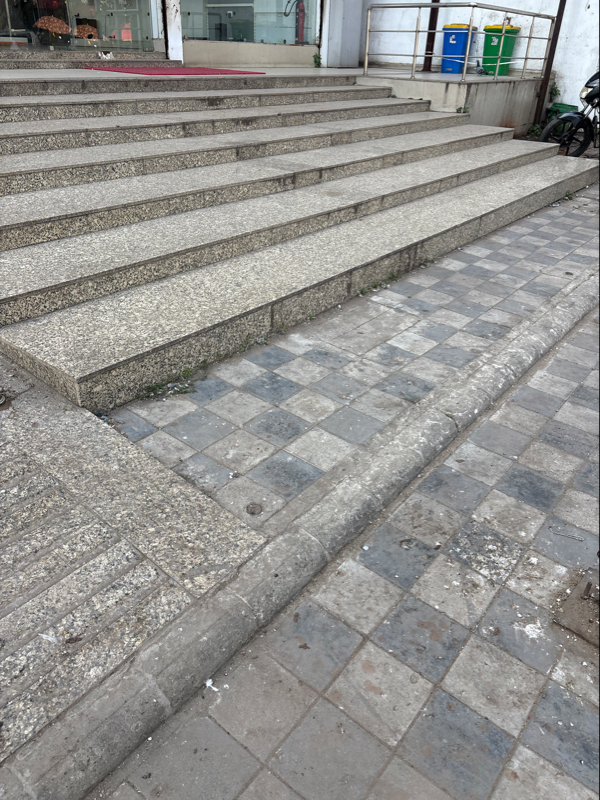 There are stairs at the entrance of the building. Not an accessible place for SAP