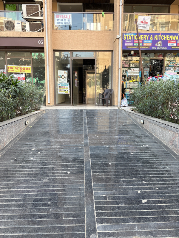 There is a ramp without a railing, and there is an elevator to access the above floors. Its a less accessible place
