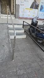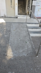 There is a ramp with one side railing , which is less accessible for SAP