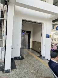 There is a ramp with a railing that leads to the elevator of the station, which is accessible for SAP