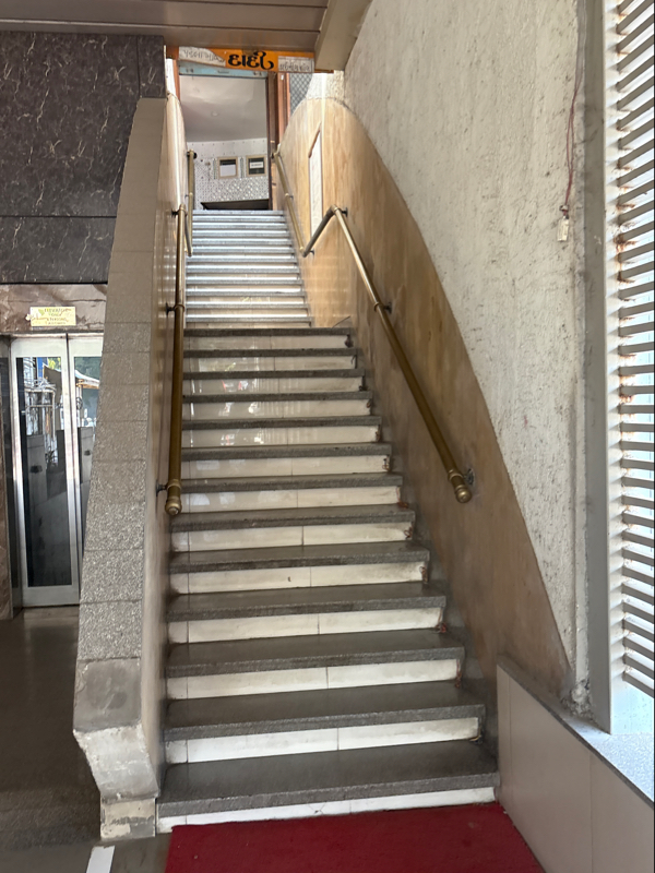 Here, proper slope is given for entry into the lift and stair case also given with railing. Accessible.for all.