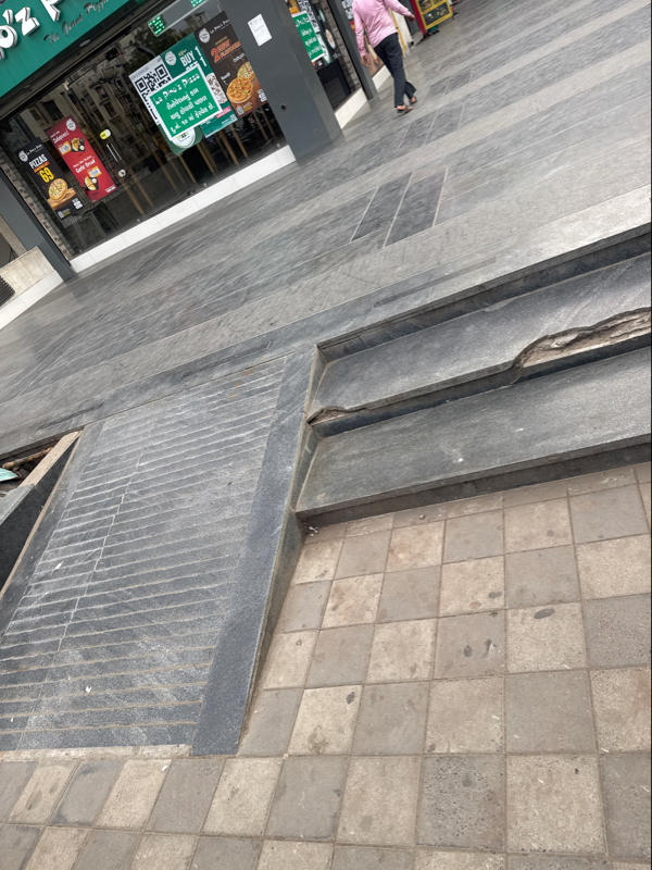 There are stairs at the entrance of the building, and there is an elevator, but to reach it, there are stairs. Not an accessible place for SAP