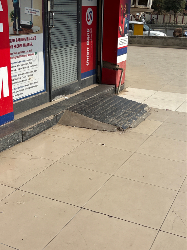 They provided stair case than provided slope at bank entrance without any support. Not accessible