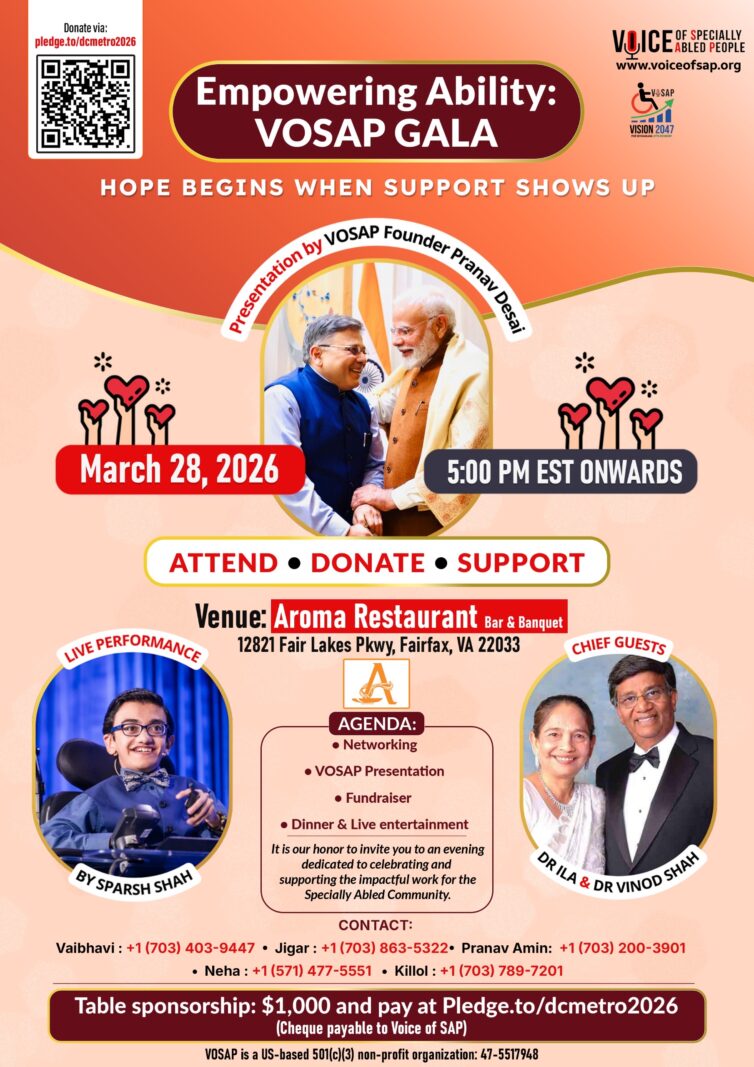 Voice of Specially Abled People is set to host an inspiring evening of purpose and impact through its upcoming “VOSAP Fundraiser Gala”, scheduled for March 28, 2026, from 5:00 PM Eastern Time. The Gala aims to bring together changemakers, supporters, and advocates committed to empowering the specially abled community.